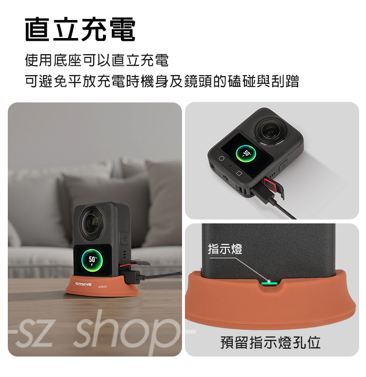 .使用底座時可直立充電