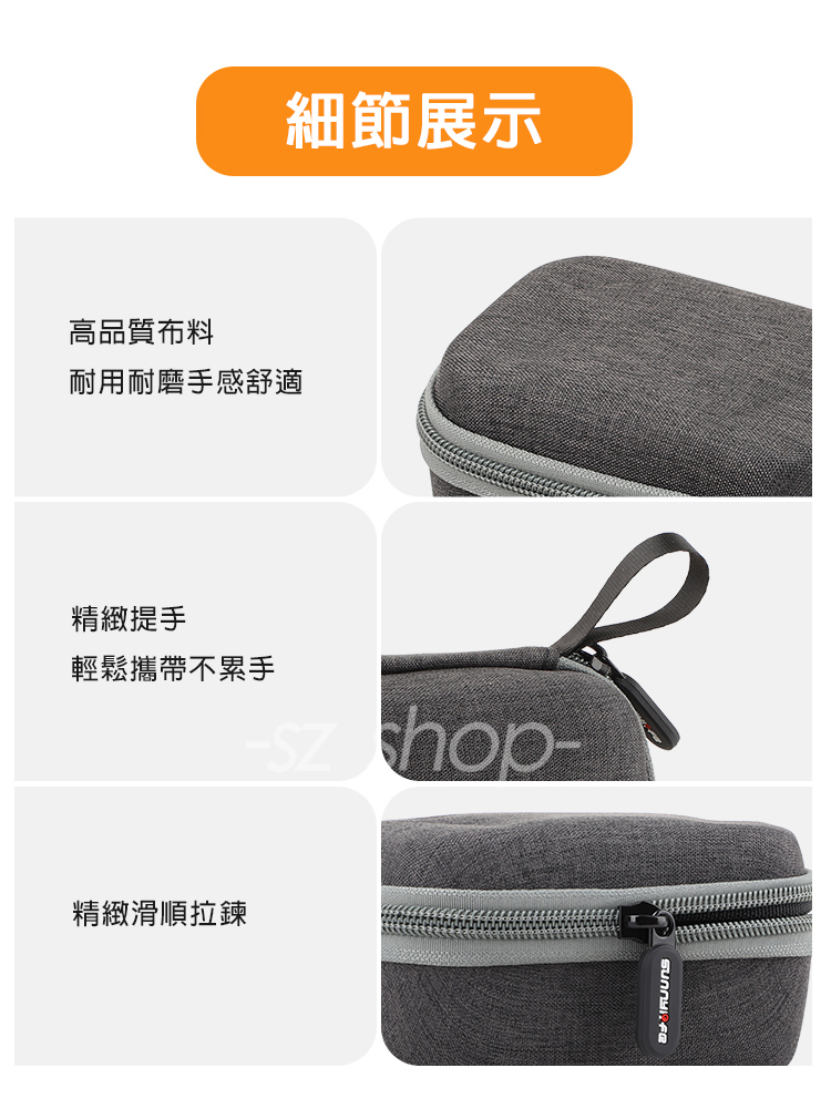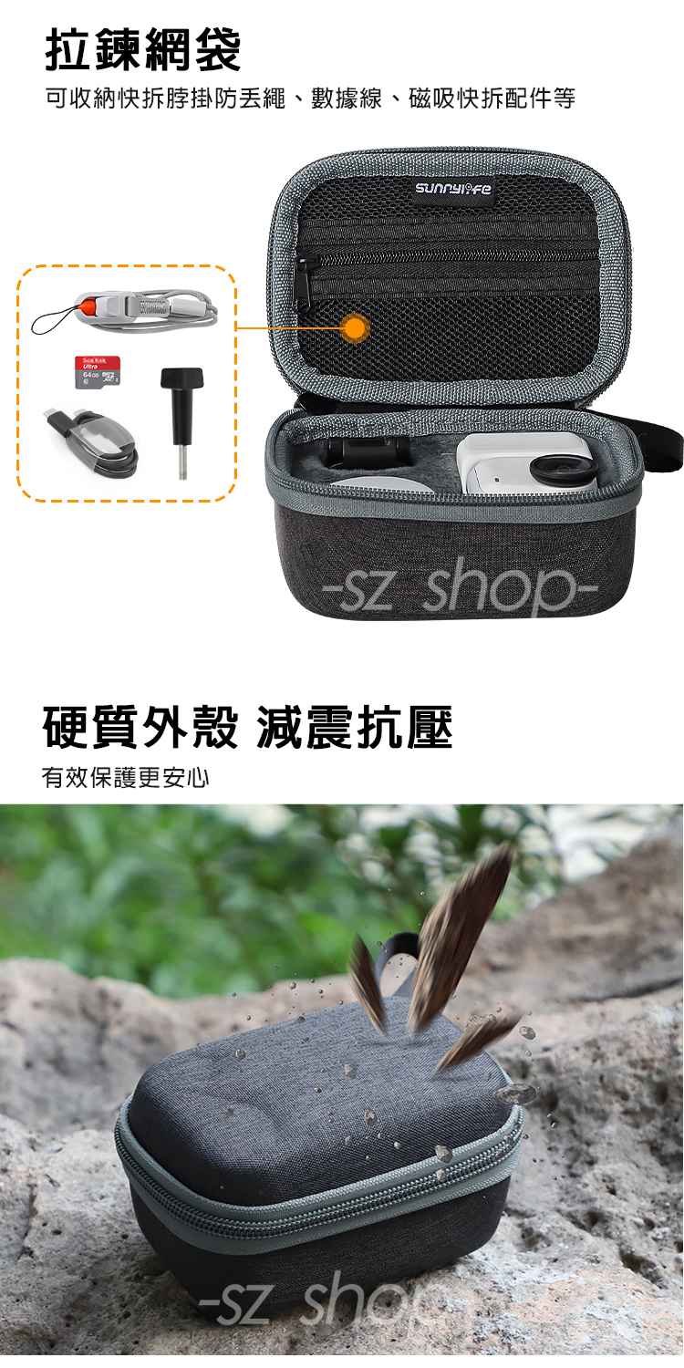 ▶拉鍊網袋,可收納磁吸快拆配件、防丟繩、數據線等