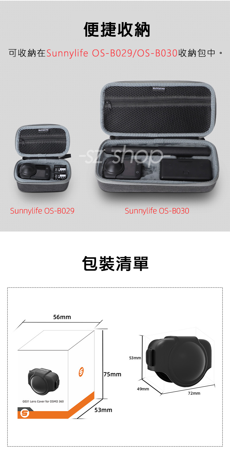 ▶可收納在sunnylife OSMO360收納包內