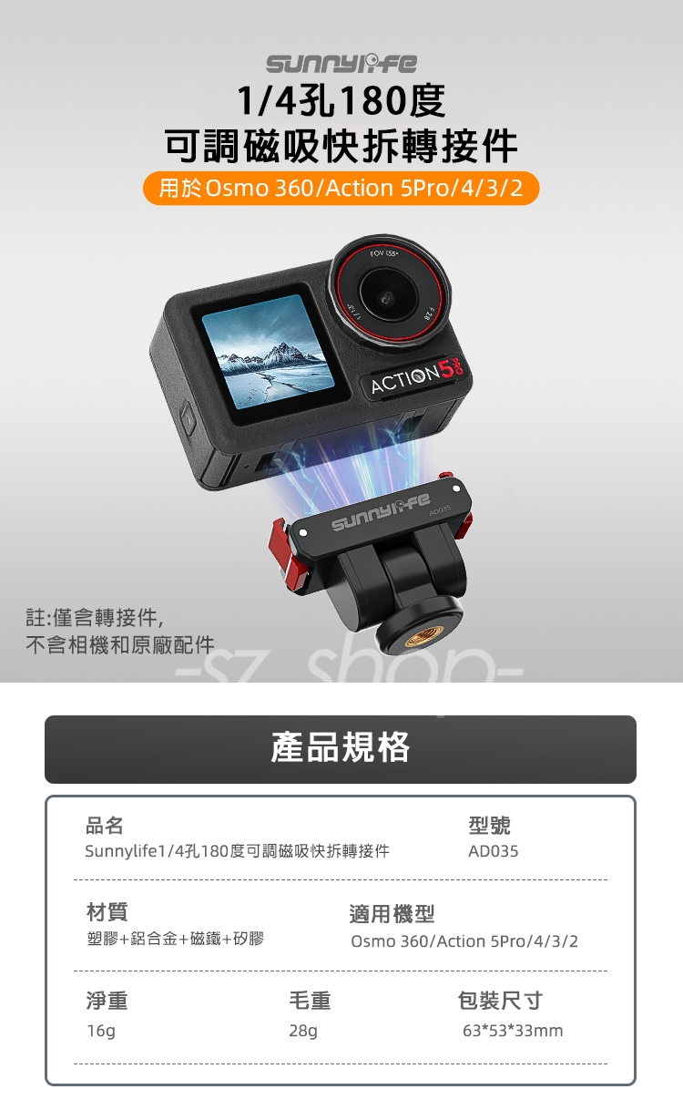 ▶適用機型:DJI OSMO 360 /Action 5 Pro/4/3/2