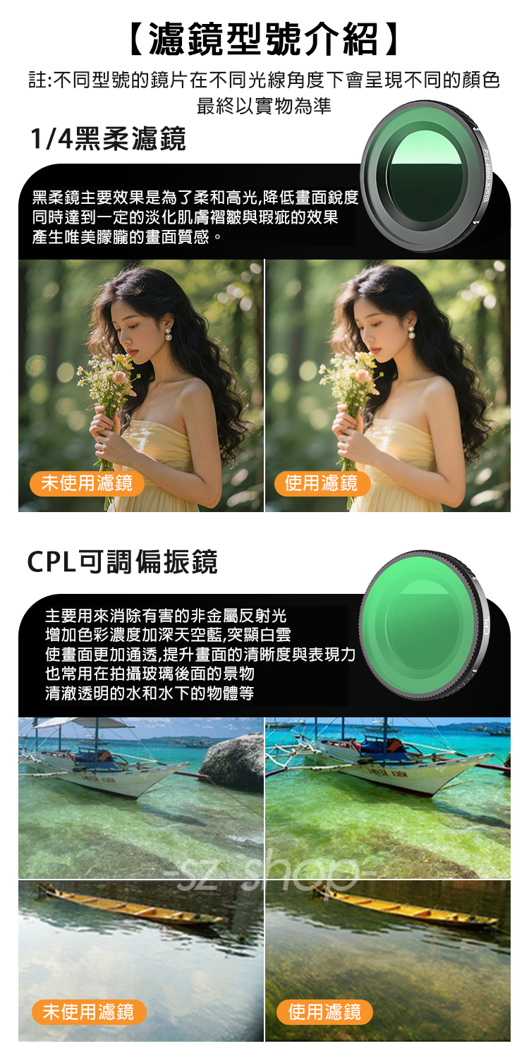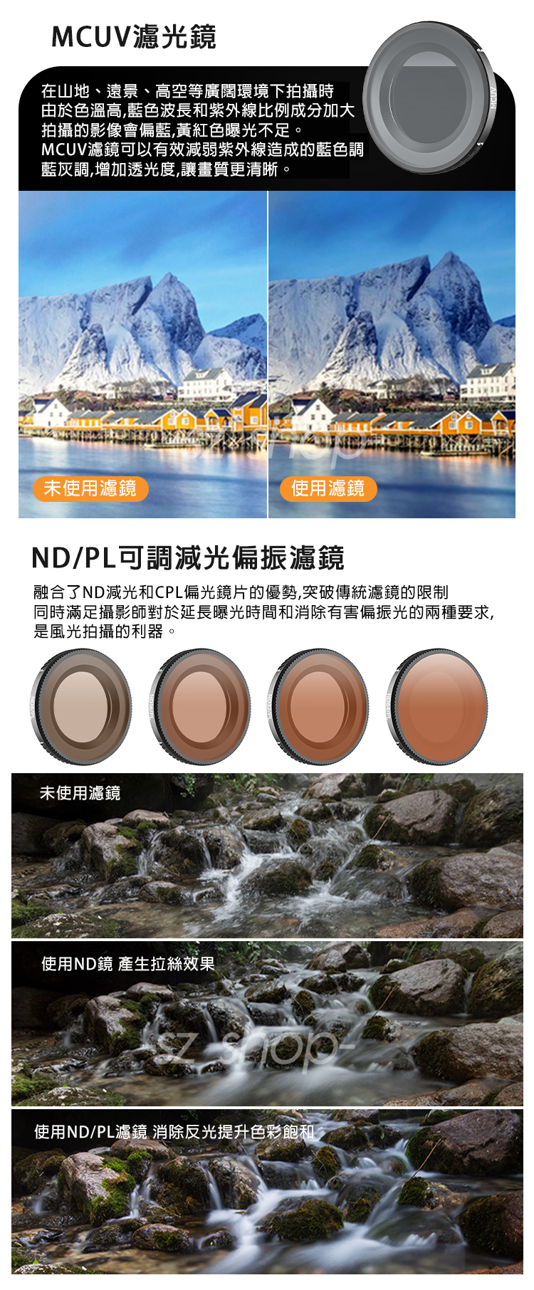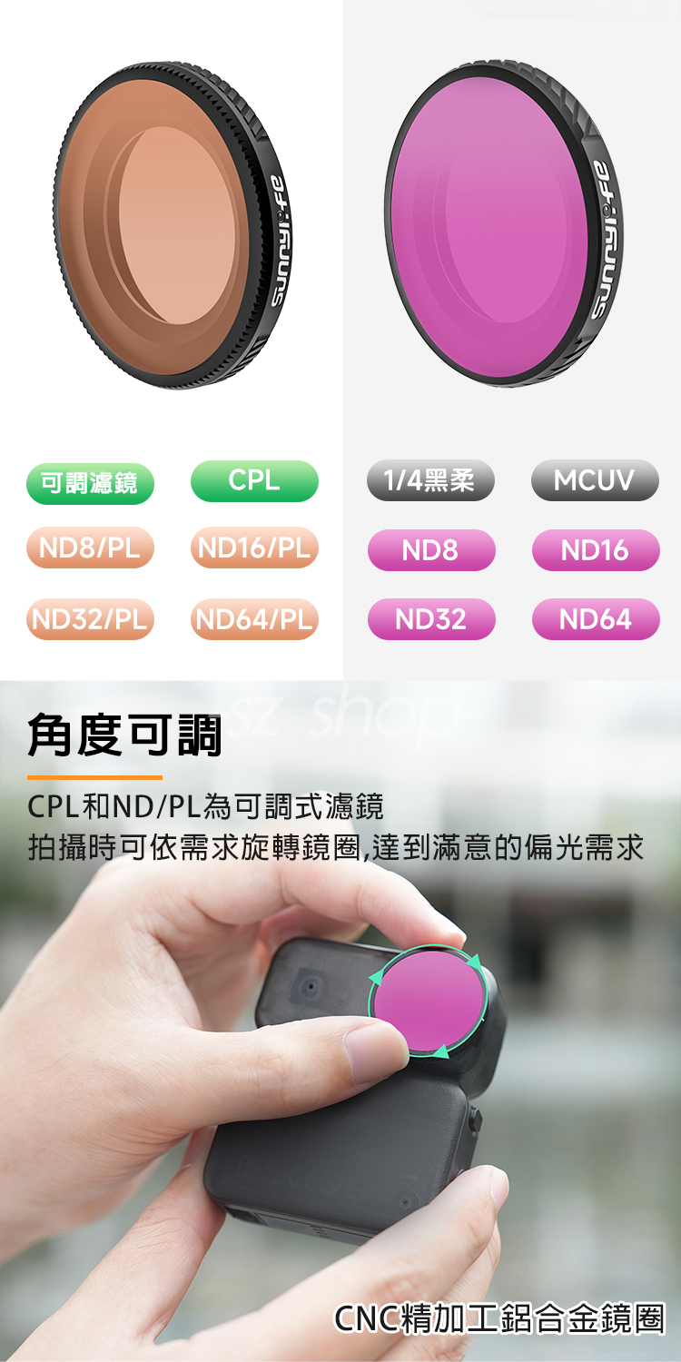 .CPL和ND/PL為可調式濾鏡,可依需求旋轉鏡圈,達到滿意的偏光需求