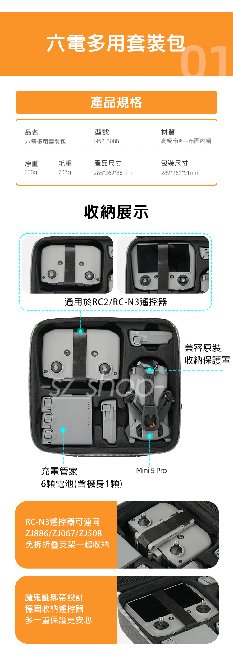 ▶Mini 5 PRO六電套裝包(贈背帶)