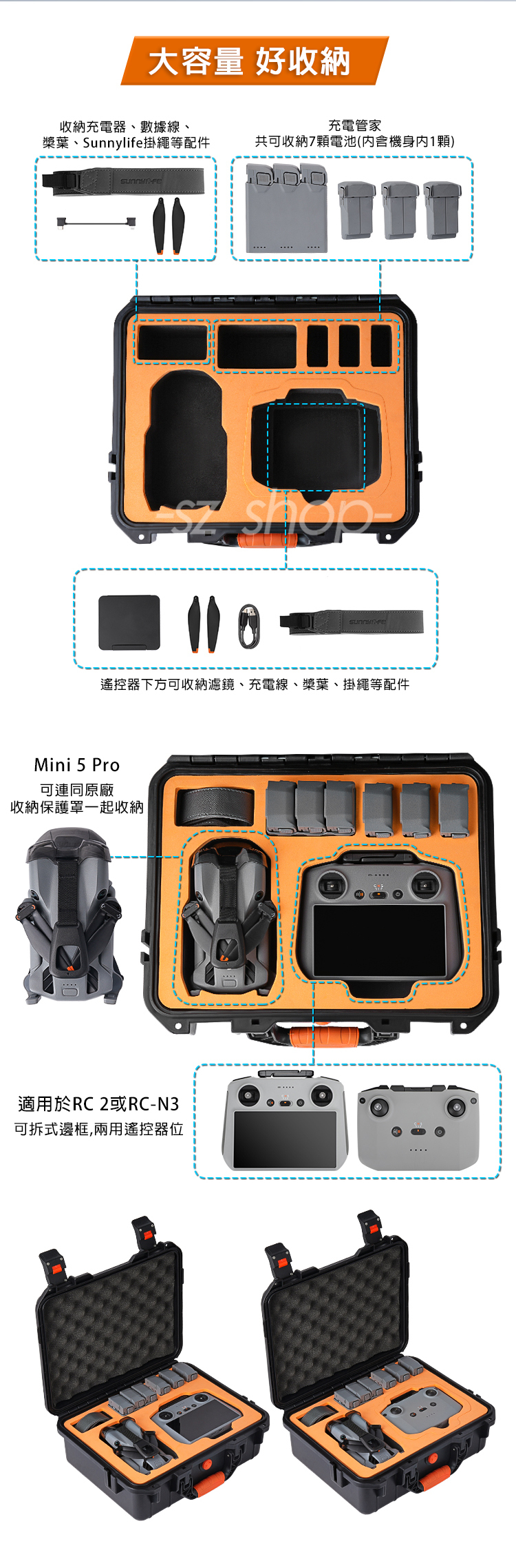 .大容量收納、可收納RC 2/RC-N3遙控器 等配件