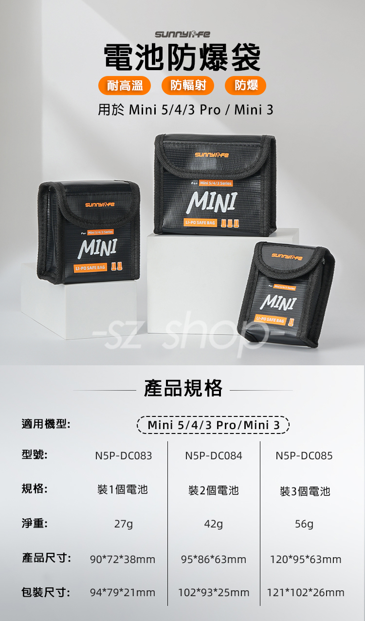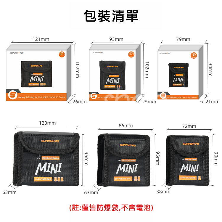 ▶產品名稱:DJI Mini 5 / 4 / 3 Pro / Mini 3 電池防爆袋