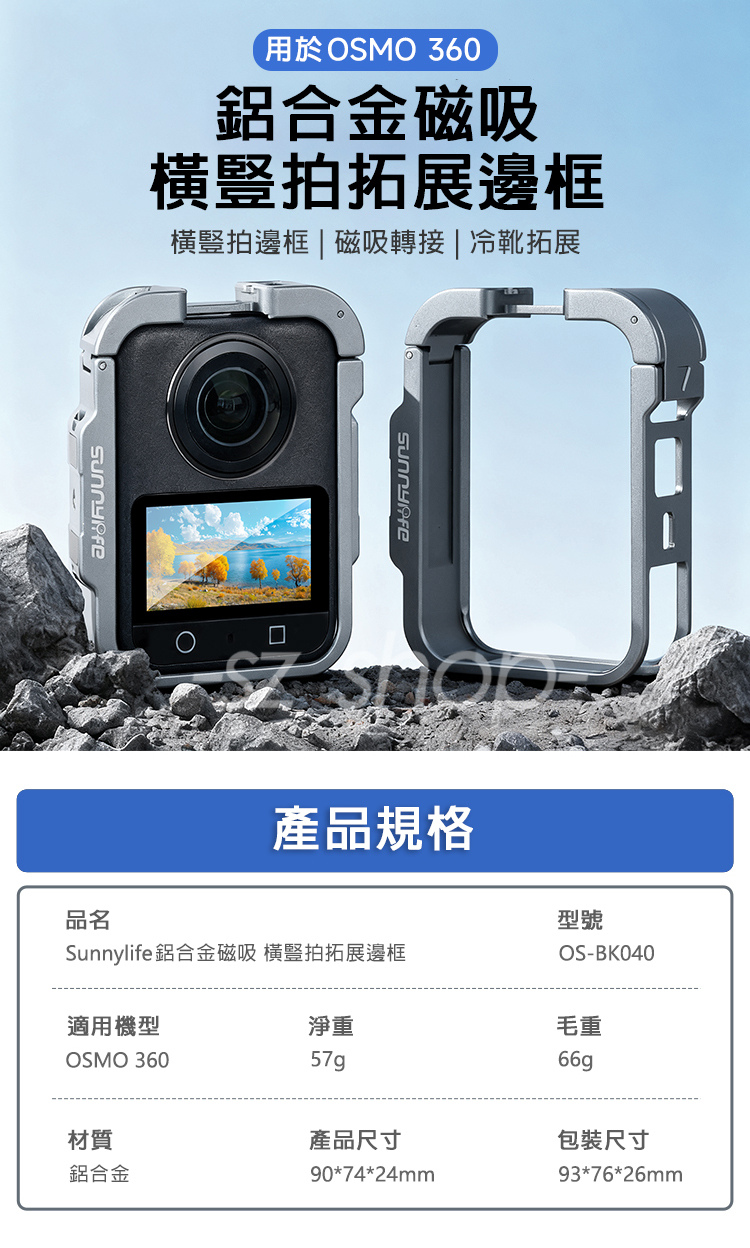 ▶品名:DJI OSMO 360 鋁合金橫豎拍邊框