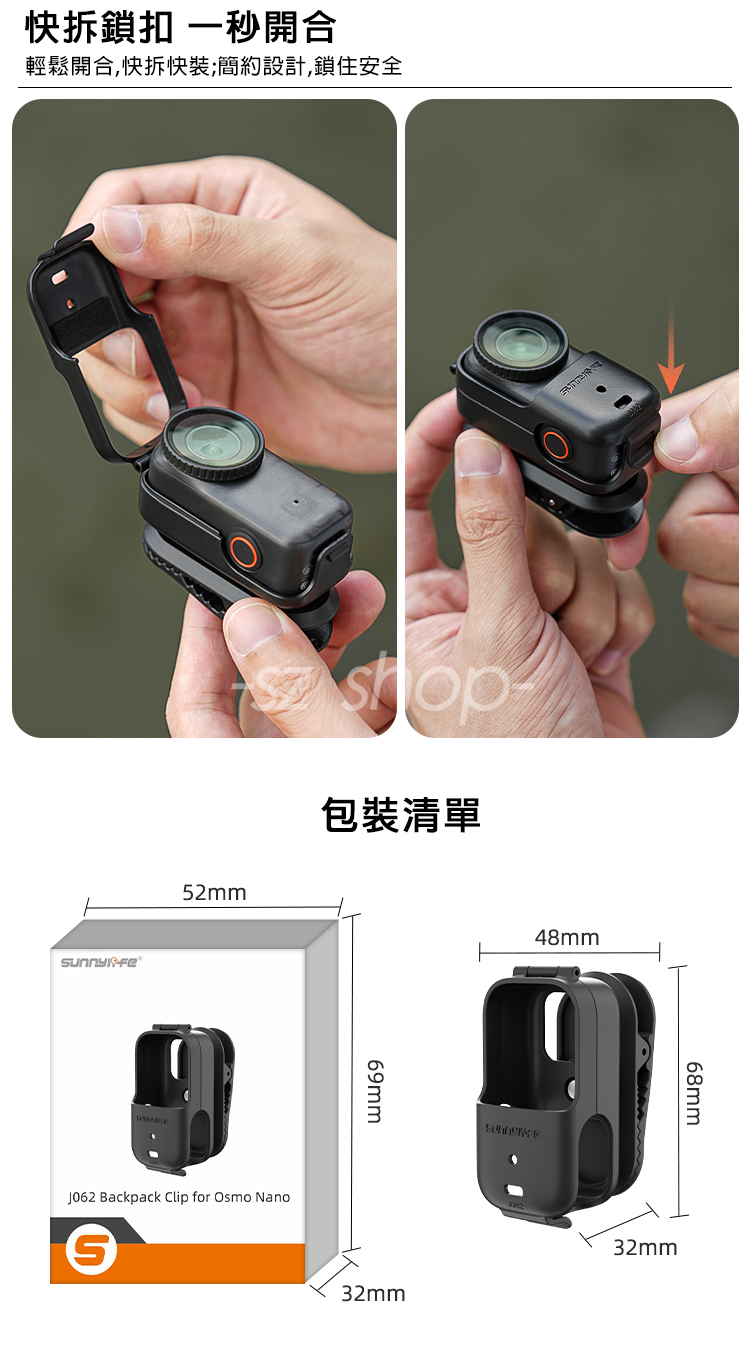 ▶品名:DJI OSMO NANO 磁吸快拆背包夾