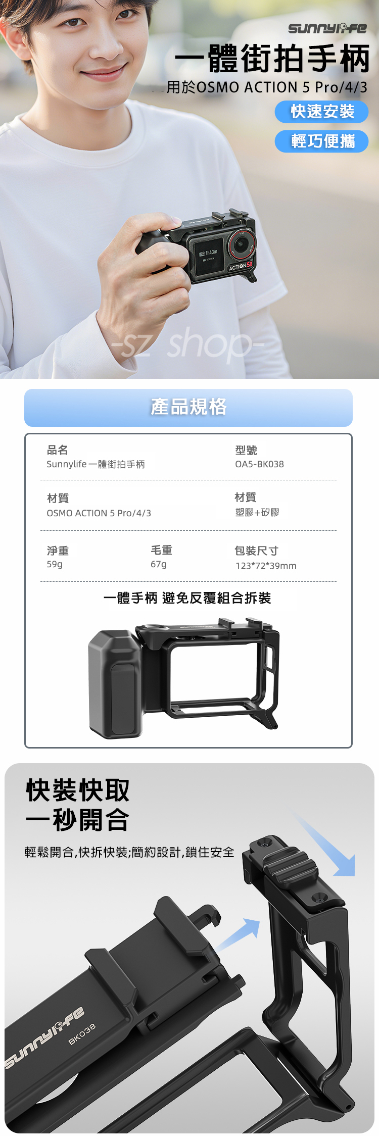 ▶品名:DJI Action 5 PRO 、4 、3 街拍套裝配件