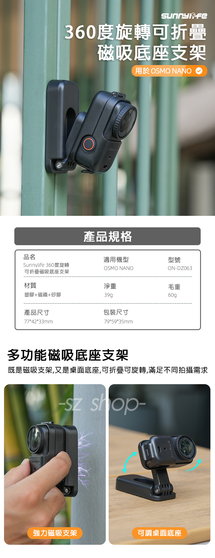 ▶品名:DJI OSMO NANO 磁吸底座支架