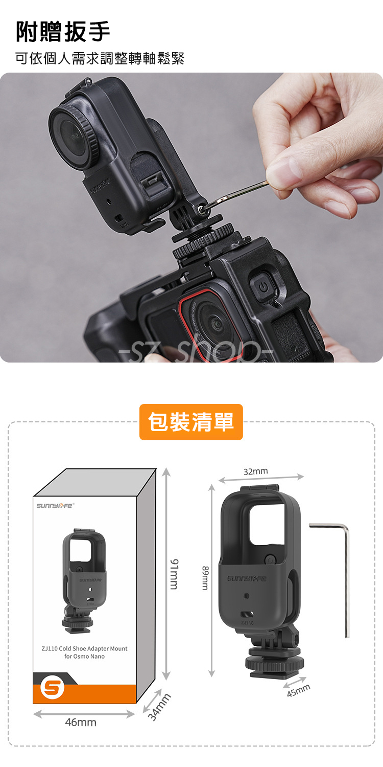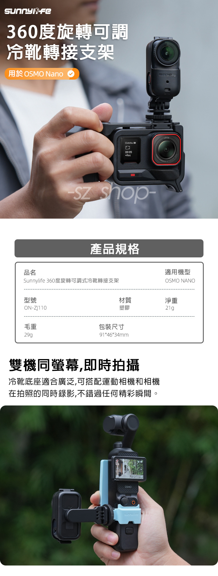 ▶品名:DJI OSMO NANO 冷靴橫豎拍轉接支架