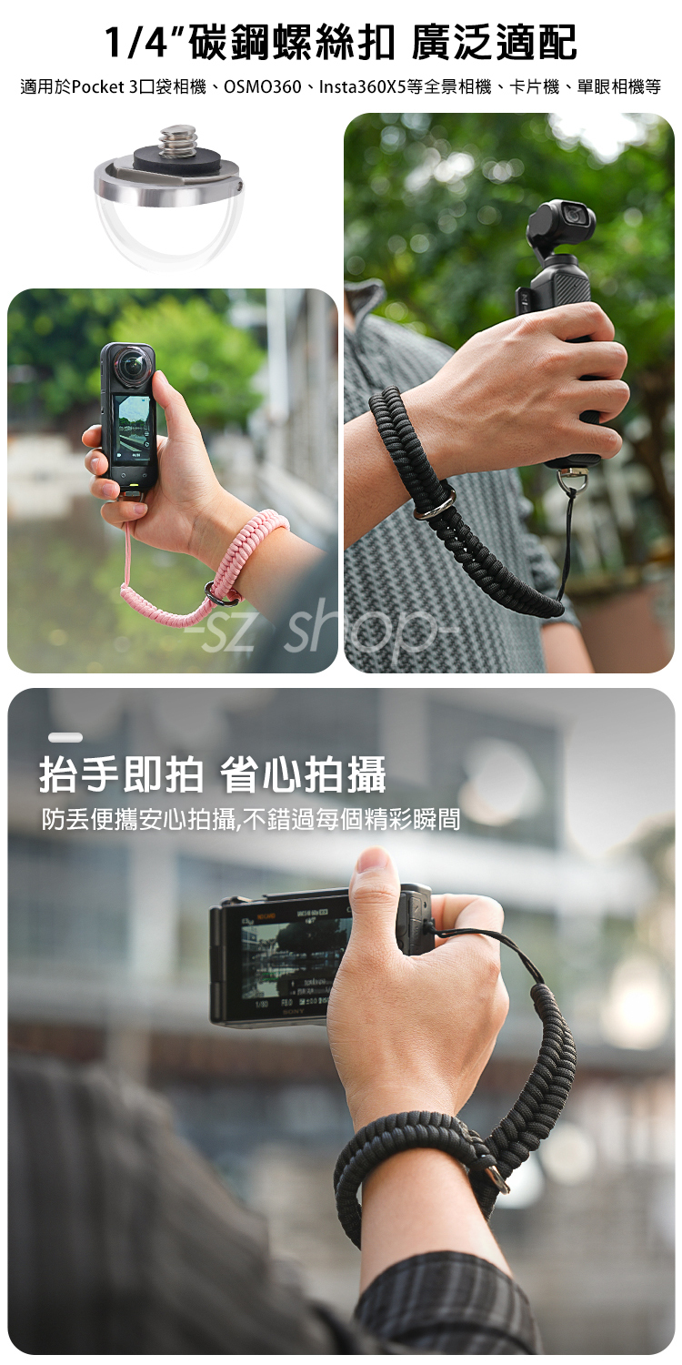 .高強度腕帶,相機滑落自動鎖緊