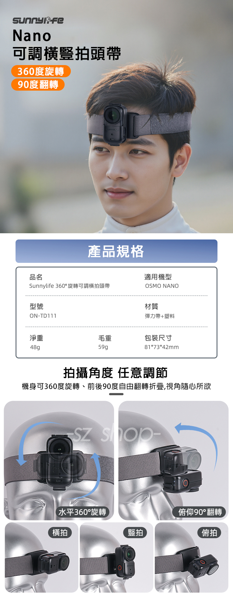 ▶品名:DJI OSMO NANO 360度橫豎拍頭帶