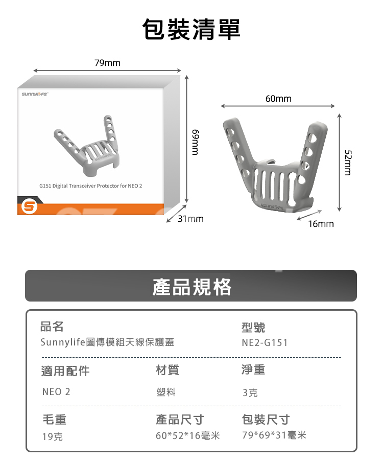 ▶可免拆收納於Sunnylife NEO 2 收納包、安全箱中