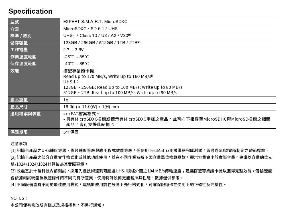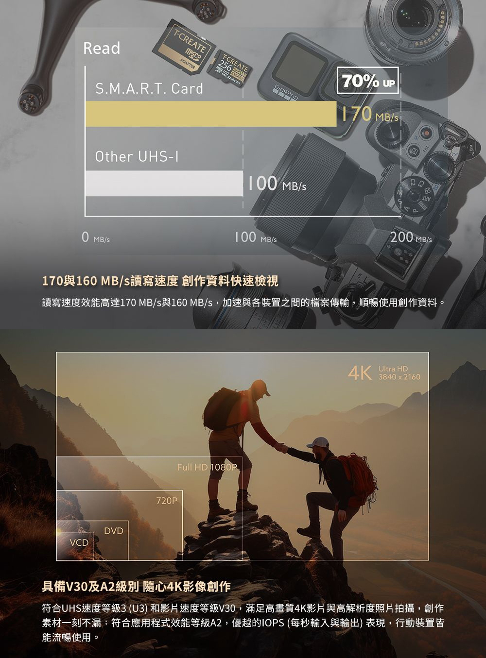 ■V30及A2級別 隨心4K影像創作,170與160 MB/s讀寫速度