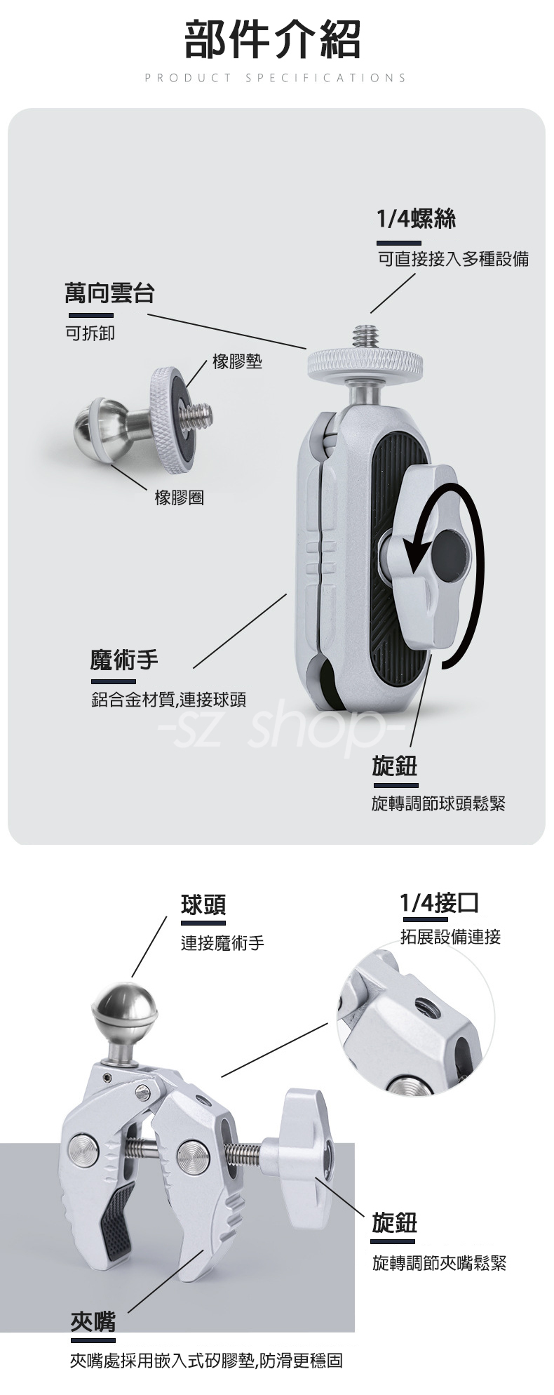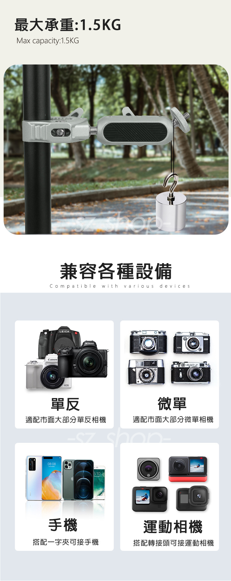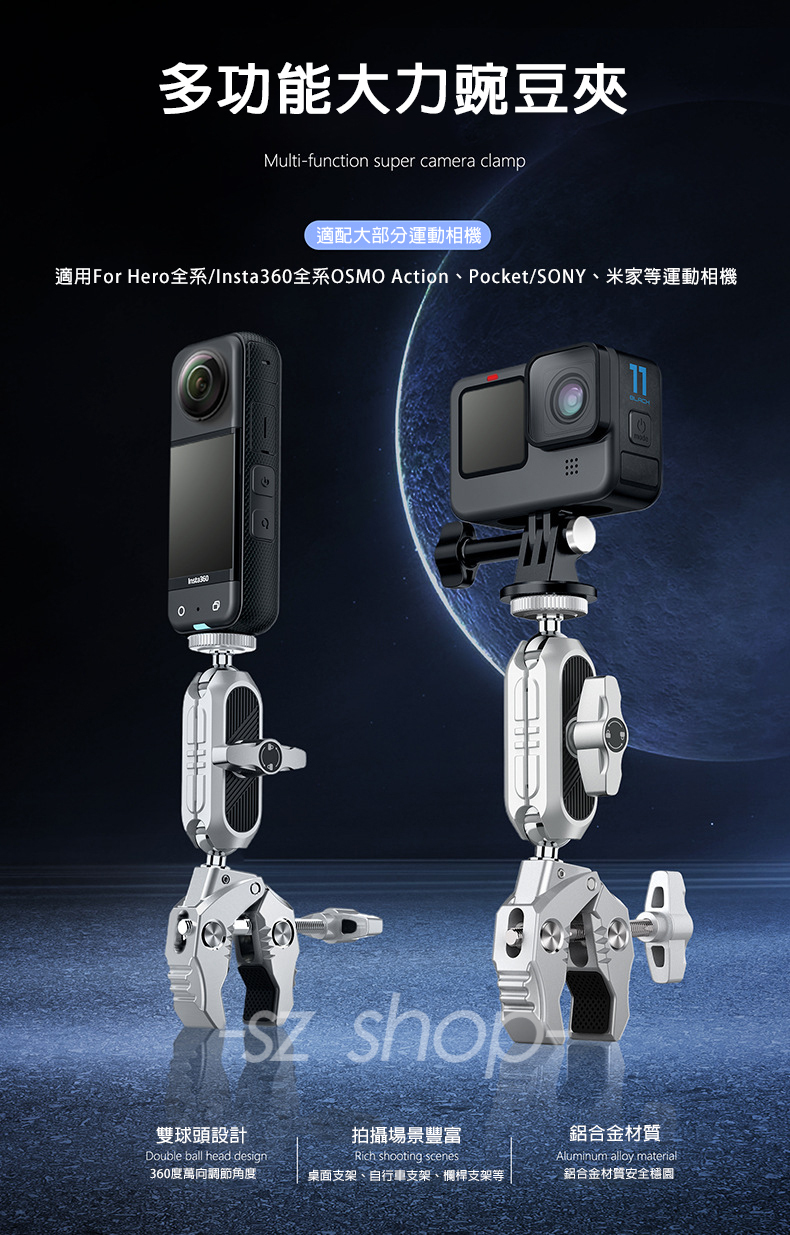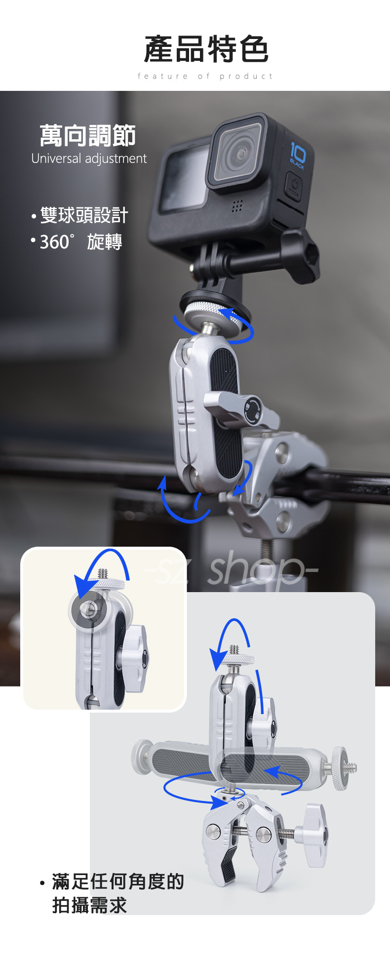 ▶360度旋轉雙球頭設計,因應不同拍設需求