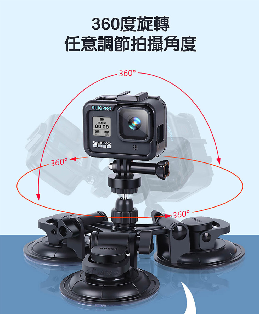 ▶品名:Insta360 GoPro Action Pocket 運動相機三角吸盤支架/三腳吸盤支架